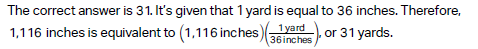 Choice B is correct. Multiplying the left- and right-hand sides of the given equation by 25 yields x2 = 900. Taking the square root of the left- and right-hand sides of this equation yields x = 30 or x = -30. Of these two solutions, only 30 is given as a choice.